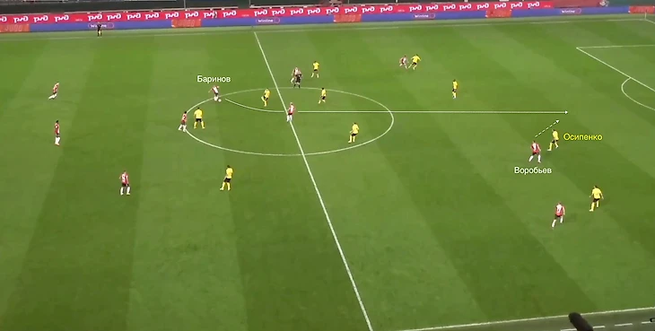 Против «Ростова» в Кубке «Локо» показал другой вариант розыгрыша – передача на Ненахова с его пасом Баринову под заброс. В тот раз «Ростов» в последний момент спас Чернов (правда, он же и проспал забегание Самошникова).