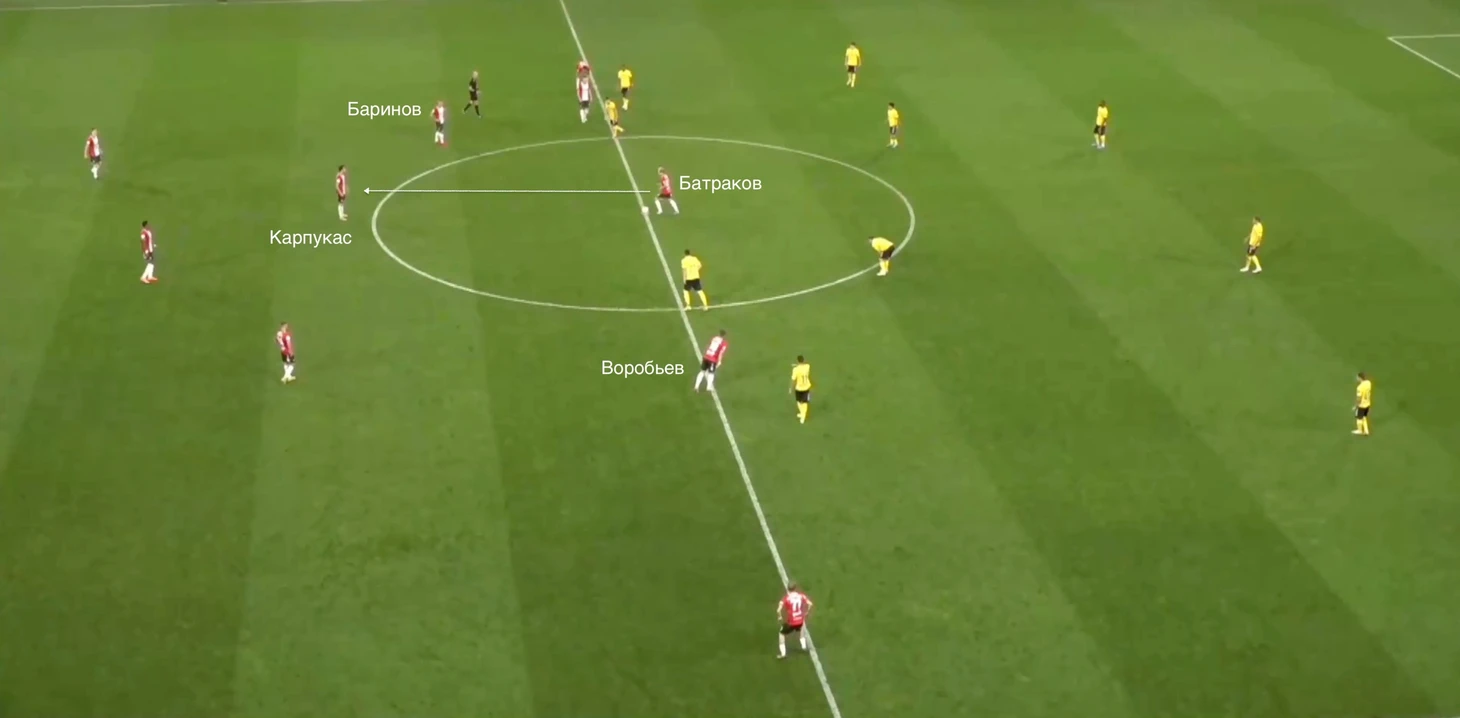 Маркиньос в последний момент выбрал «Спартак», а Галактионову пришлось выбирать между Батраковым и Сарвели. Сначала Батраков забрал место в старте, а потом избавил главного тренера от выбора: когда выходит Сарвели, Батраков опускается в опорную зону.