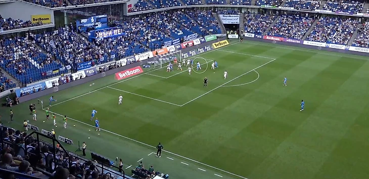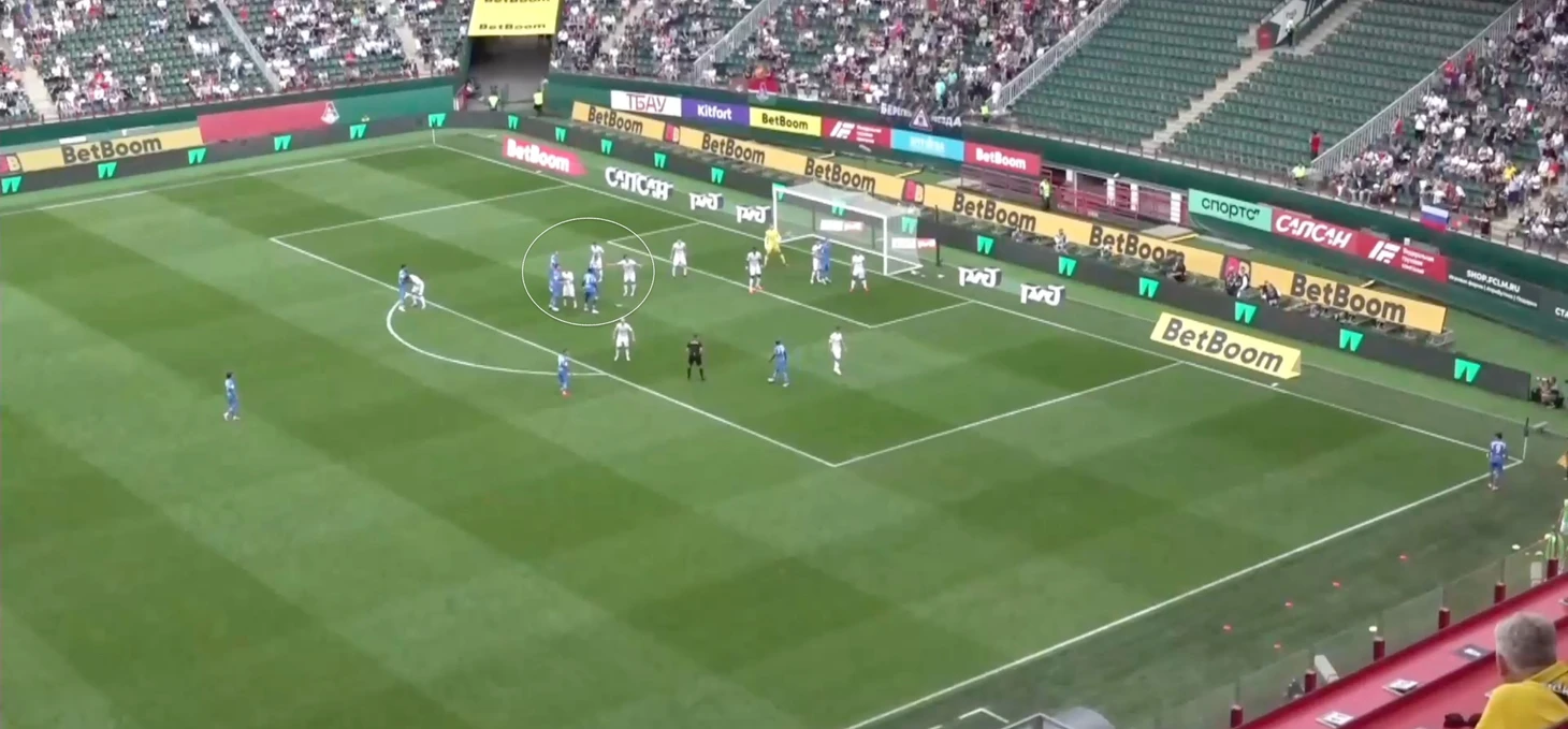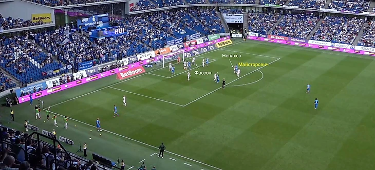 Галактионов использует трех игроков в зонах: Баринов располагается ближе всех к зоне подачи, Ньямси – в центре вратарской, Морозов или Фассон – в ее дальнем углу. Серьезные претензии, вероятно, можно предъявлять как раз по угловому с «Динамо», в остальных случаях игроки в зонах снимали верх (особенно хорошо это делает Морозов, который в прошлом сезоне часто проигрывал верховые единоборства).