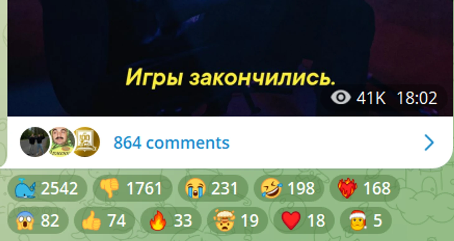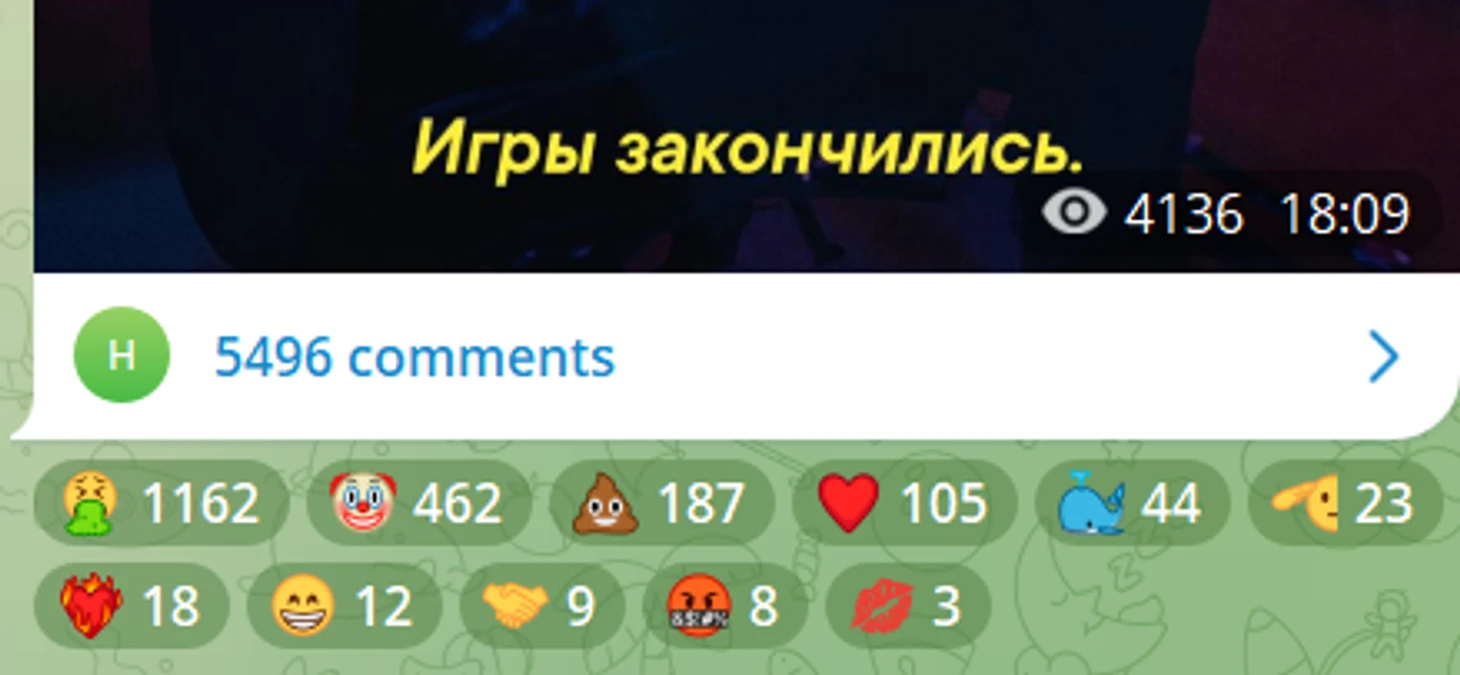 В канале «Спартака» предусмотрительно отключили негативные реакции. Так что самой популярной стала реакция празднования. Разбитых сердец немало, но все-таки значительно меньше.