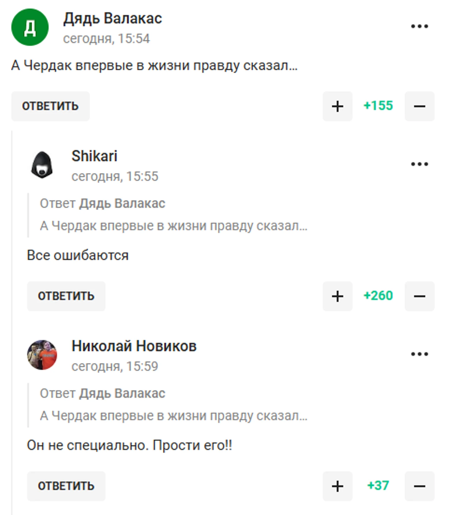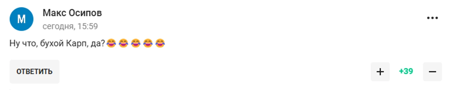 Большая часть из этого огромного количества комментариев – нецензурная. Но есть и приличные. Например, пользователь под никому Тако написал: «Совсем не по-спартаковски».
