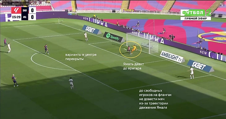 Также важно понимать, что на обоих ложится большой объем работы без мяча. Ямаль (как один из вингеров) начинает давление и даже должен идти до вратаря. Кунде ответственен за подстраховку зоны на фланге: должен вовремя выдергиваться и накрывать соперника.