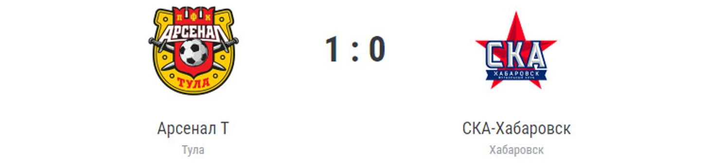 Гол: Хабибов, 61. «Арсенал» (Тула): Левашов, Бердников, Семенчук, Печенкин, Попов, Кайнов, Ткачев (Хабибов, 60. Раздорских, 77), Левин, Цараев (Коротков, 77), Гелоян (Липовой, 46), Малик (Турищев, 81). «СКА-Хабаровск»: Имамов, Покидышев, Быков, Журавлев, Носков (Поярков, 21), Бавин, Н.Першин (Гаглоев, 69), Симонян (Емельянов, 69), Гаджимурадов (Кутовой, 84), Гонгадзе, Алиев (Гонгапшев, 69). Наказания: Быков, 68. Бердников, 87. Емельянов, 90+3 (предупреждения). Судья: Соколов (Воронеж). 31 августа. Тула. Стадион «Арсенал». 4680 зрителей.