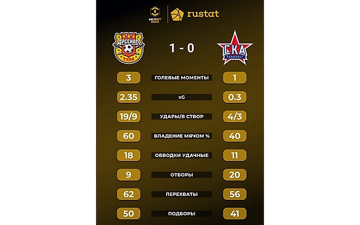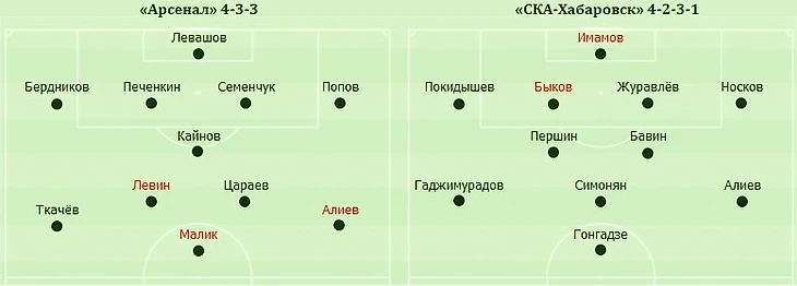 Первый тайм прошёл с заметным преимуществом «Арсенала». Не зря же встречались лидер и аутсайдер турнира. Но открыть счёт команда Александра Сторожука так и не смогла. Дважды гостей спас вратарь Имамов, а ещё в одном случае гол Малика был отменён из-за фола в атаке.