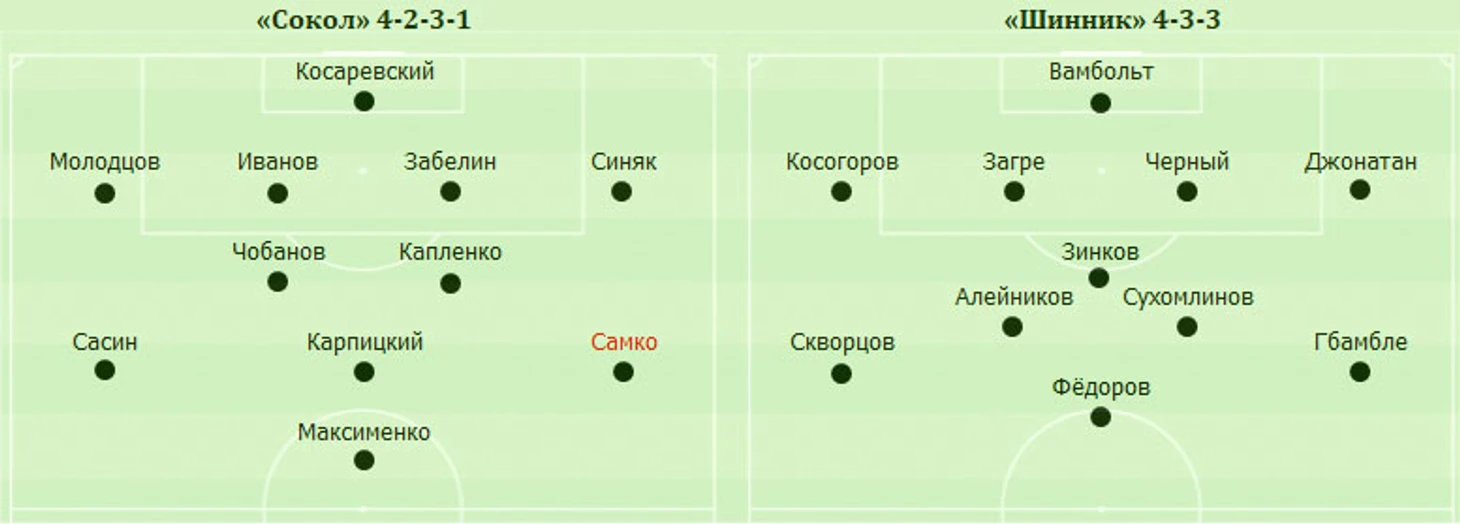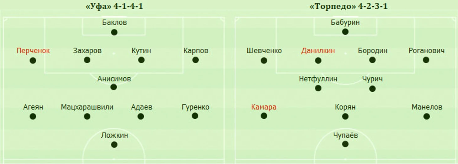 Ну и еще надо отметить такой момент: на этот матч ярославцы «подредактировали» схему. Оставив стартовый состав с прошлого матча, они выдвинули чуть повыше крайних хавбеков и опустили чуть ниже обычно игравшего «десятку» Алейникова. Так что стартовая расстановка «Шинника» вместо 4-2-3-1 или 4-1-4-1 стала больше похожа на 4-3-3.