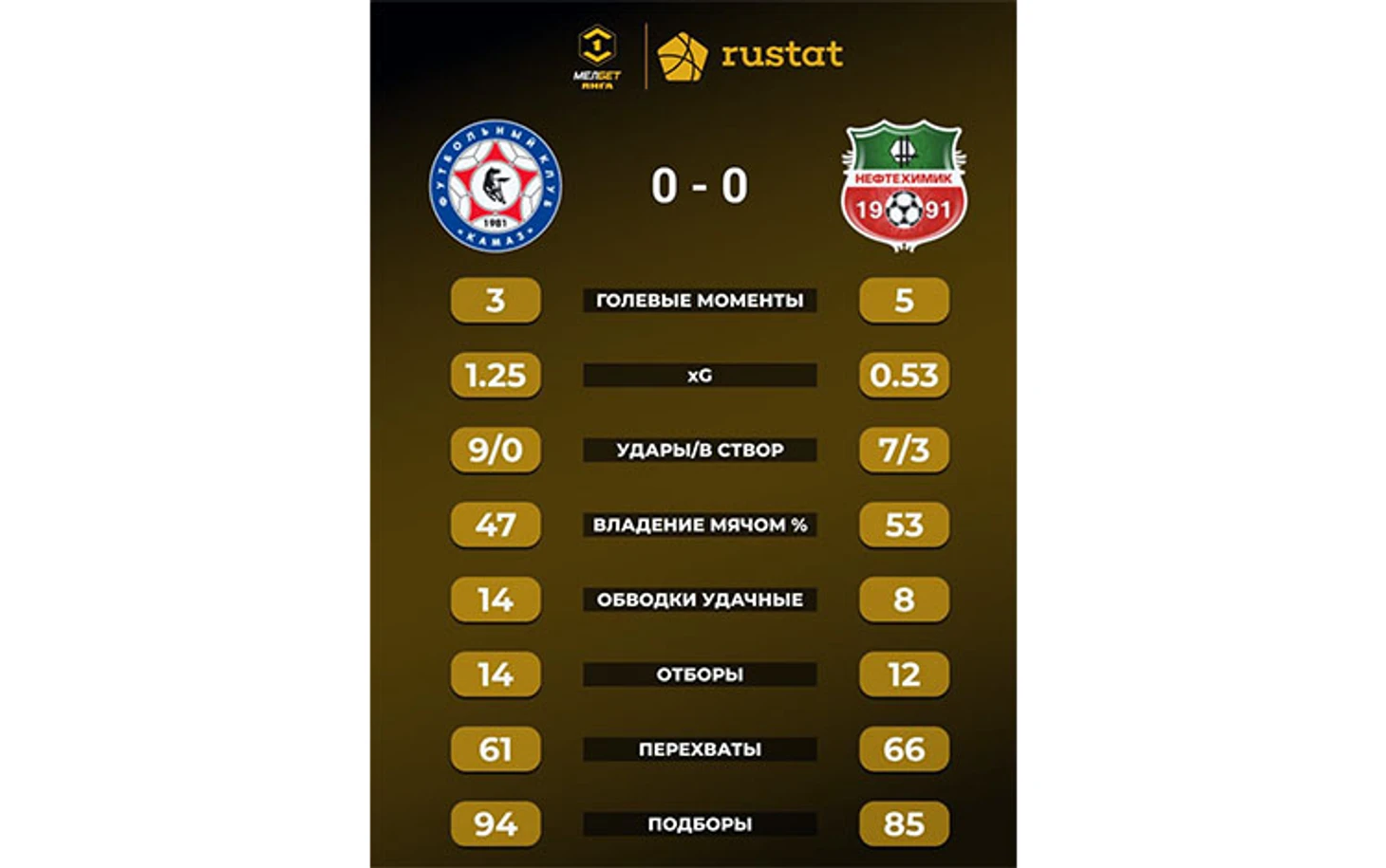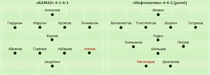 ● «Нефтехимик» не забивает во вторых таймах восьми гостевых матчей, «КАМАЗ» не пропускает в первых таймах 10 матчей подряд. ● «КАМАЗ» не может забить «Нефтехимику» на своём поле четыре матча подряд.