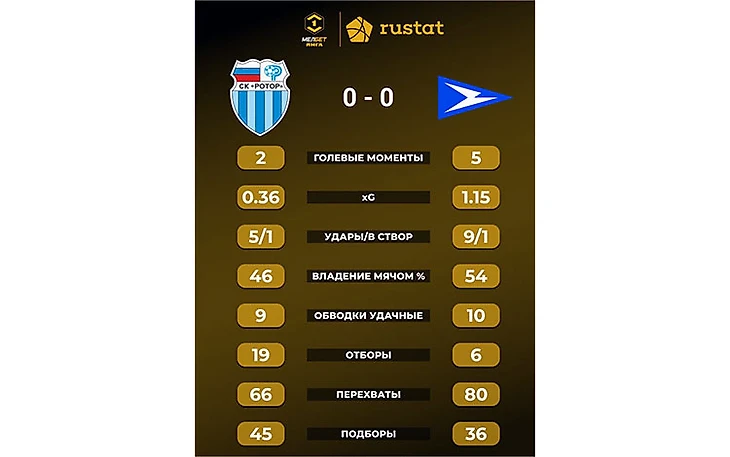 Во втором тайме перекладина ещё раз выручила хозяев поля, но на этот раз это был скорее курьёз: мяч свалился с ноги делавшего подачу Малярова и опустился за шиворот вратарю «Ротора» Чагрову прямо в каркас ворот. Хозяева же могли забить за минуту до окончания матча, когда вышедший на замену Пяткин после классной подачи со штрафного Прищепы головой метров с пяти промахнулся мимо абсолютно открытого угла ворот.