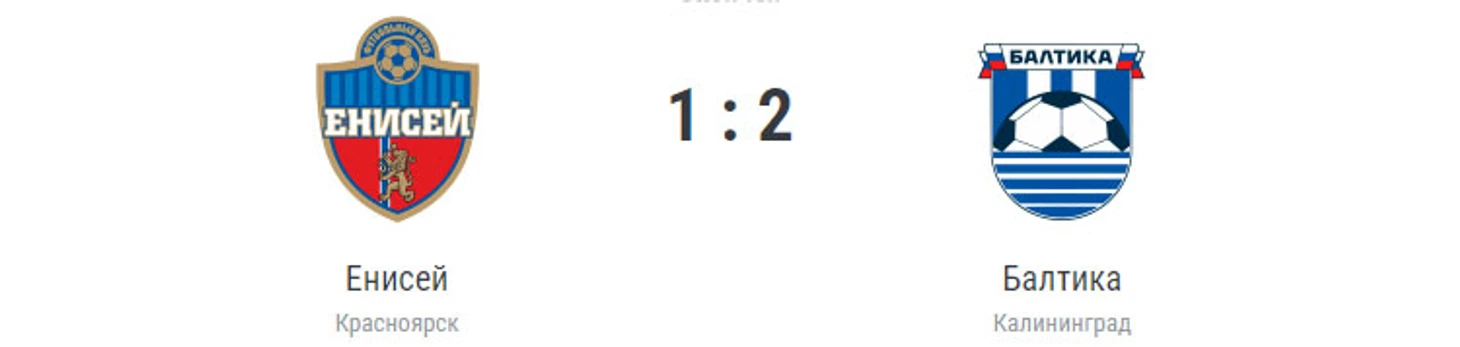 Голы: Никишин, 23 (0:1). Антипин, 48 – в свои ворота (0:2). Ломакин, 85 (1:2). «Енисей» (Красноярск): Антипин, Гилязетдинов, Ширяев (Григорьев, 74), Рукас, Масловский, Самойлов (Шипунов, 60), Лайкин (Батырев, 60), Ломакин, Чуканов, Мазурин, Молтенинов (Д.Тихонов, 60. Ушатов, 74). «Балтика» (Калининград): Свинов, Осипов, Андраде, Гассама, Ковалев (Терентьев, 58), Пряхин, Аванесян, Саусь (Мохаммад, 88), Никишин (Титков, 72), Эльдарушев, Глушков (Петров, 72). Наказания: Чуканов, 3. Самойлов, 56. Мазурин, 74. Петров, 90+4 (предупреждения). Судья: Е.Галимов (Екатеринбург). 31 августа. Красноярск. Стадион «Центральный». 3716 зрителей.