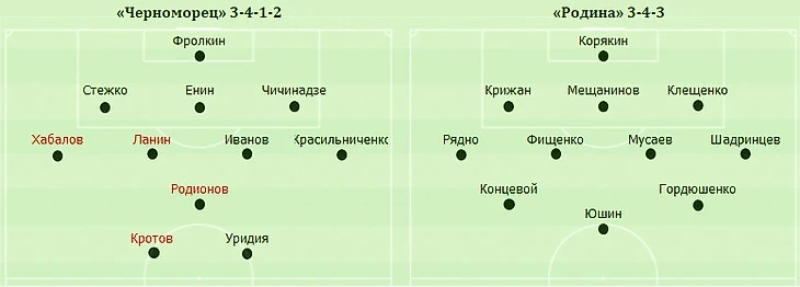 «Черноморец», проводивший первый матч под руководством нового тренера – Олега Василенко, и «Родина» выдали яркий первый тайм, ознаменовавшийся – редчайший случай! – двумя автоголами, зафиксированными с разницей в одну минуту. Сначала новороссиец Стежко срезал мяч в свои ворота после прострела москвича Рядно. И практически тут же защитник гостей Крижан сделал то же самое после прострела Родионова.