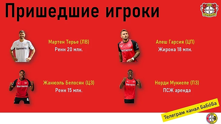 Самым дорогим приобретением этого лета стал Мартен Терье из «Ренна». В прошлом сезоне атакующему игроку удалось забить 9 мячей и сделать 3 голевых, поэтому Алонсо посчитал, что вингер будет полезным активом в команде. Чтобы Терье не было скучно (и дабы подстарховаться в связи со слухами об уходе Джонатана Та) из «Ренна» взяли ещё одного француза - Жанюэля Белосяна. Сезон долгий, команде играть на несколько фронтов и момент для молодого защитника ещё настанет. Но пока Белосян выходил лишь в кубковом матче, да в Суперкубке. Завершается французское трио арендованным у ПСЖ Норди Мукиеле - замена вернувшемуся в «Баварию» Станишичу.