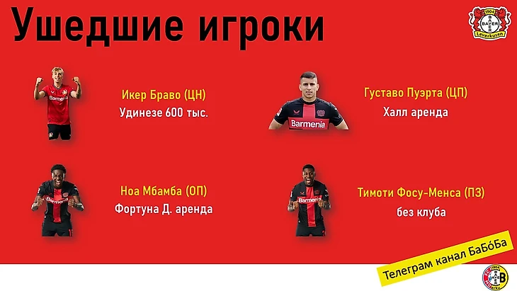 Как и в прошлом сезоне «Байер» вышел в минус. Тогда, правда, цифры были меньше, чему способствовала продажа Диаби в АПЛ. Положительный баланс мог стать этим летом, но леверкузенский клуб отказался от денег за Та, Фримпонга, Гримальдо, Адли и Вирца. В конце сезона узнаем, было ли это пиком, когда стоило продавать некоторых звёздных игроков или же Алонсо во второй раз докажет свой гений.