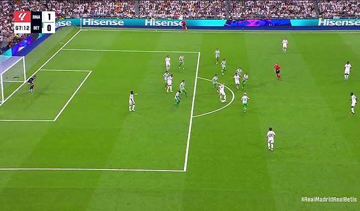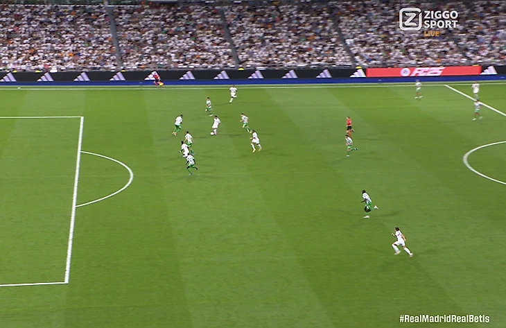 «Мадрид» тяжело стартовал: не мог вскрыть организованный «Бетис», почти не создавал опасных моментов. 13 ударов в первом тайме, но почти все неопасные. Половину из них нанес Мбаппе – очень хотел первый гол в Ла Лиге.