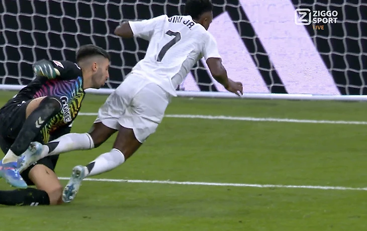 Через несколько минут «Реал» заработал пенальти: Винисиус влетел в штрафную, потом и во вратаря Силву – фол.