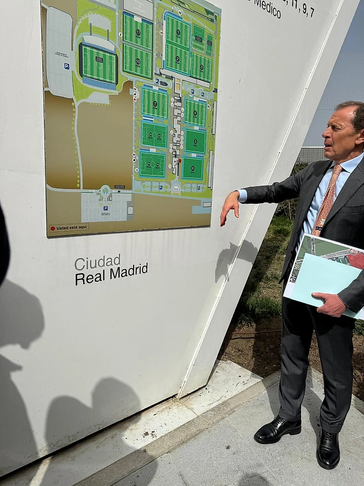 Эмилио Бутрагеньо проводит для нашей группы экскурсию по базе «Реала»