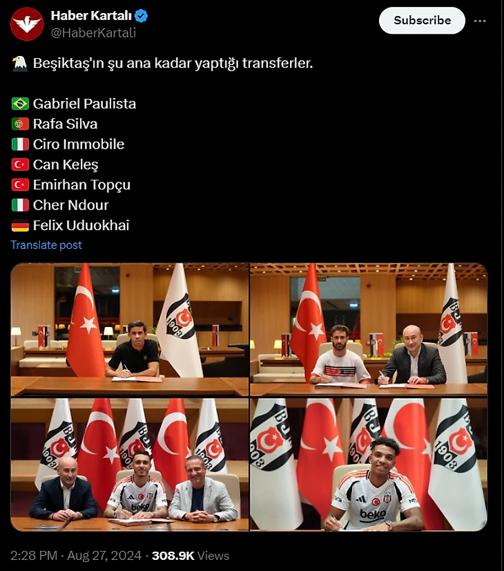 Источники: X/Twitter (@343_digital, @FutbolArena, @_BESIKTAS_FR), IHA, TRT Haber, Haber Global, TRT Spor, Beşiktaşlıların Yolu, Gazete Oksijen, @Akşam.