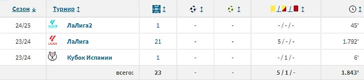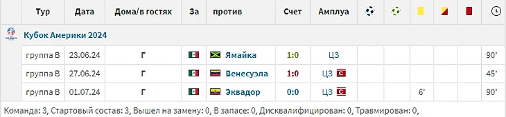 Сыграл 3 игры, провел на поле 225 минут из 270 возможных