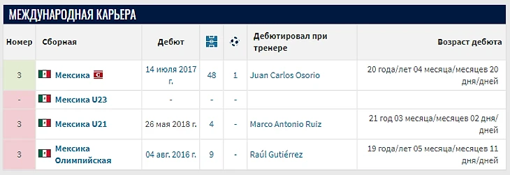 Лидер сборной мексики по выносам 11 всего, в среднем за матч 3,7