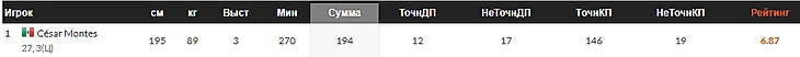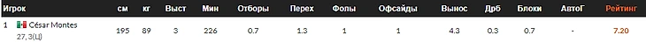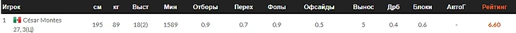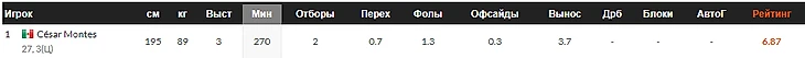Сесар Монтес занял третье место по средней оценке в сборной Мексике - 7,2