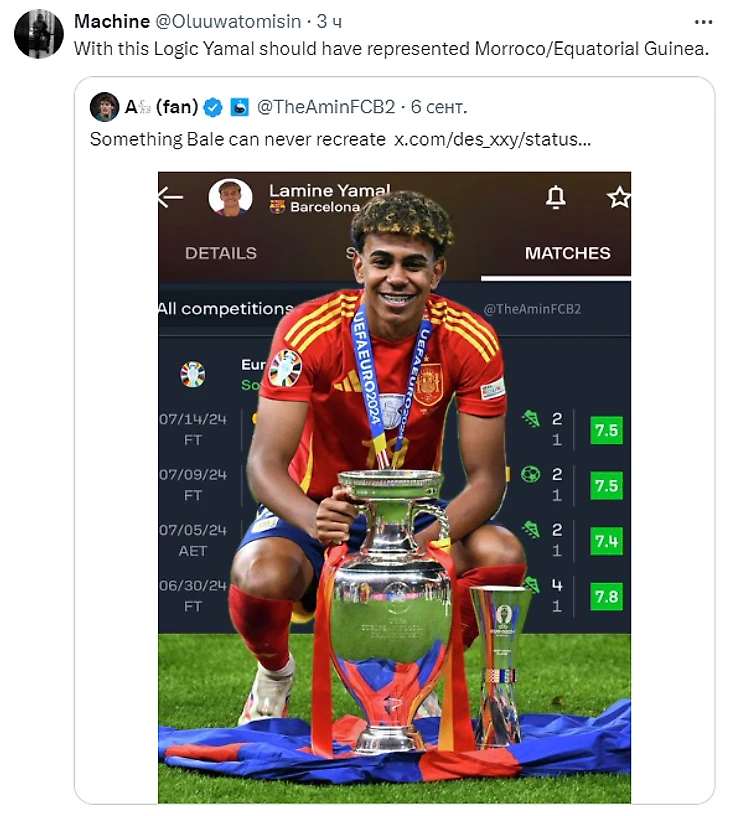 «По такой логике Ямаль должен представлять Марокко или Экваториальную Гвинею (родину родителей)».