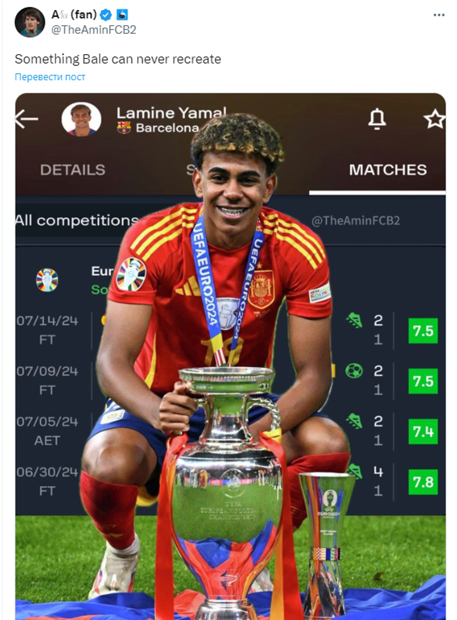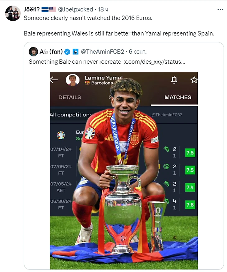 «Кто-то явно не смотрел Евро-2016. Бэйл представлял Уэльс намного лучше, чем Ямаль Испанию».