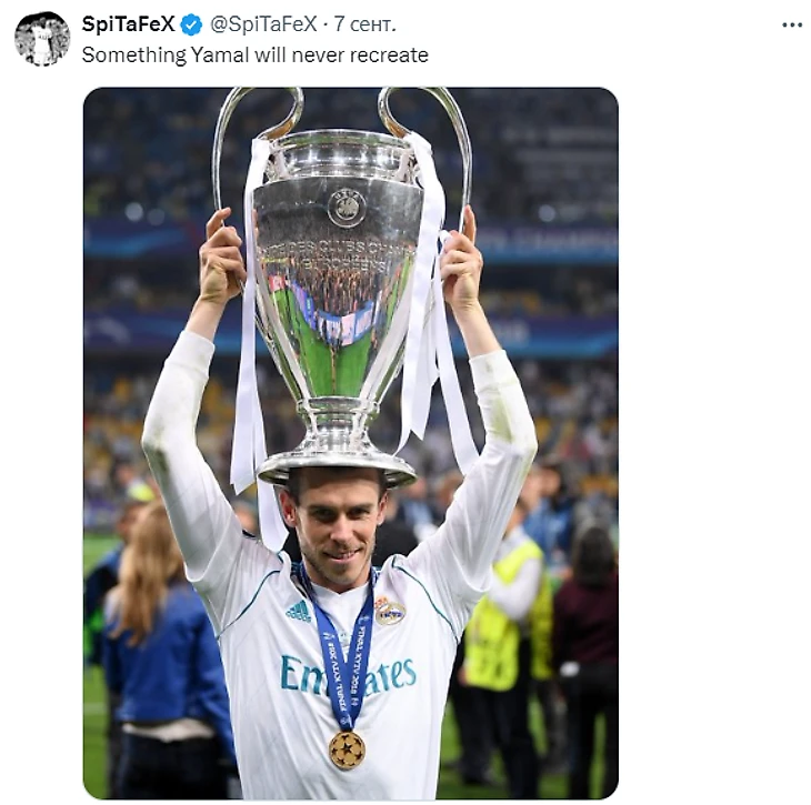 В ответ фанат «Барселоны» под ником TheAminFCB2 пытался потроллить валлийца, опубликовав фото Ламина Ямаля с подписью «То, что Бэйлу никогда не светит». Как же зря он это сделал!