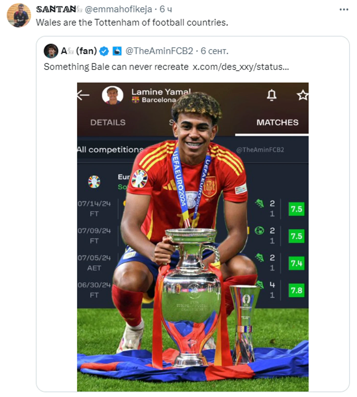 «Уэльс − это «Тоттенхэм» среди сборных». Болельщик открыл ящик Пандоры сравнением Ямаля и Бэйла