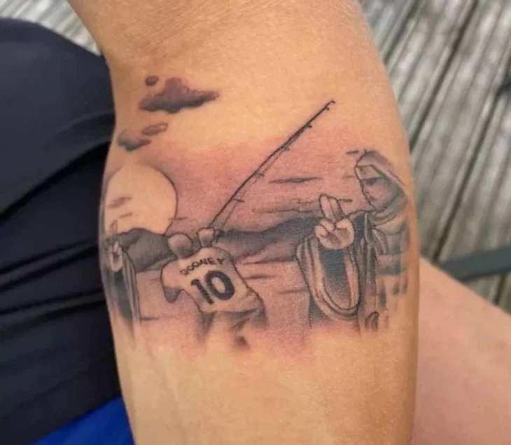 Мне всегда нравился британский стиль футбола. Если я делаю татуировки, я хочу, чтобы они что-то значили. В детстве я был болельщиком «Манчестер Юнайтед», а также Руни, и еще я люблю рыбалку. Так и получился Руни с удочкой!»
