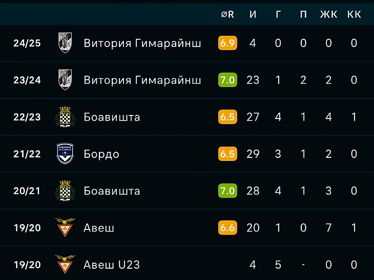 Но Мангаш здесь тоже решил не задерживаться и перешел свободным агентом в «Боавишту». За этот клуб Игрок отличился 4 голами и 1 ассистом за 28 матчей средняя оценка за игру 7.0 уже лучше чем в прошлом сезоне 💪