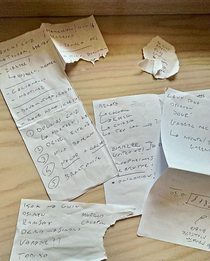 Оказывается, во время работы над инсайдами Фабрицио ведет записи. Почерк у итальянца не самый лучший, но некоторые фамилии разобрать можно.