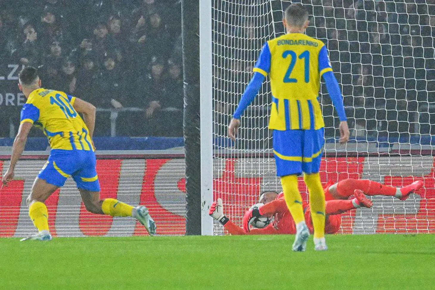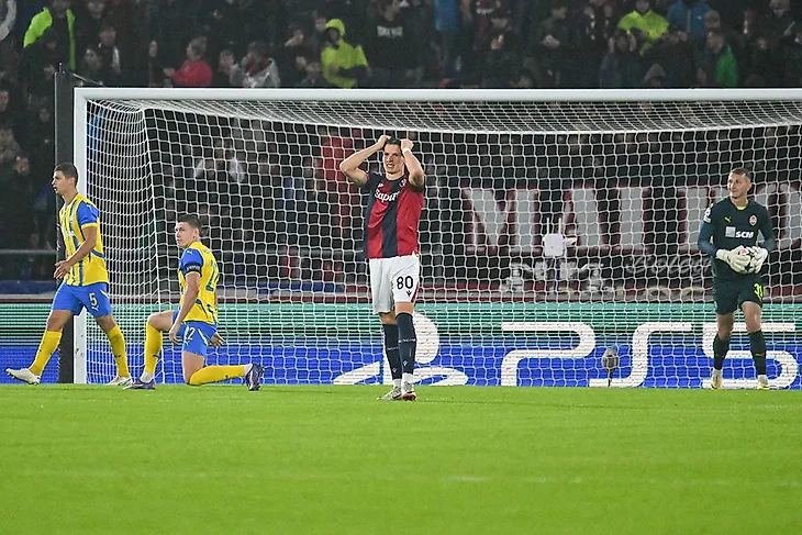 «Болонья» вновь могла пропустить в дебюте и не сделала этого только благодаря мастерству Скорупского, который вытащил пенальти от главной звёзды украинской команды, Судакова.