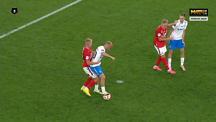 Быстро сориентировался и прокинул между ног Даниилу Денисову – защитник «Спартака» мяча коснулся, но все равно в итоге не смог помешать.