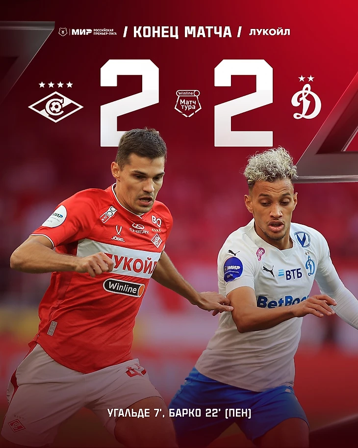 «Спартак» продлил серию без поражений в РПЛ до восьми матчей — 4 победы и 4 ничьих. Команда Деяна Станковича набрала 16 очков и занимает 5-е место в таблице РПЛ. «Динамо» с 17 очками — на 4-й строчке.