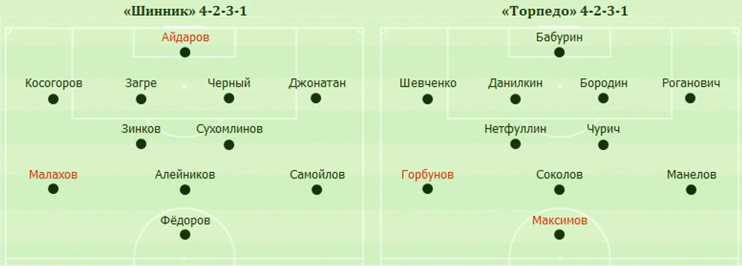 Первый тайм прошел с небольшим перевесом «Торпедо», которое создало один момент, но его не реализовало. А вот хозяева, уповавшие на быстрые атаки и скорость своих футболистов, сумели организовать выпад по левому флангу. В ситуации два на два ярославец Малахов сместился с фланга ближе к центру штрафной, пробил и попал в дальний нижний угол.