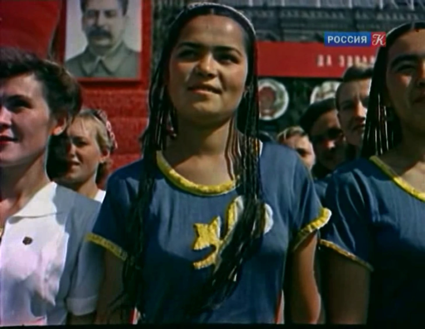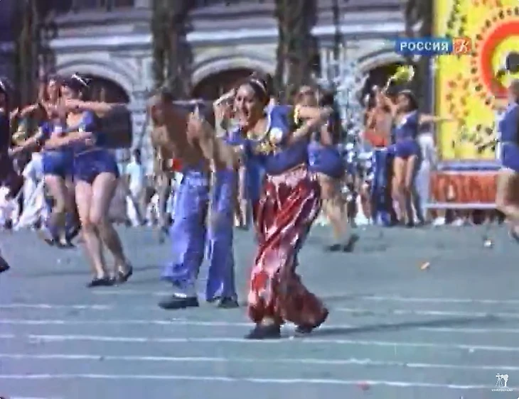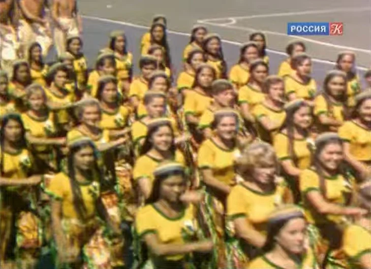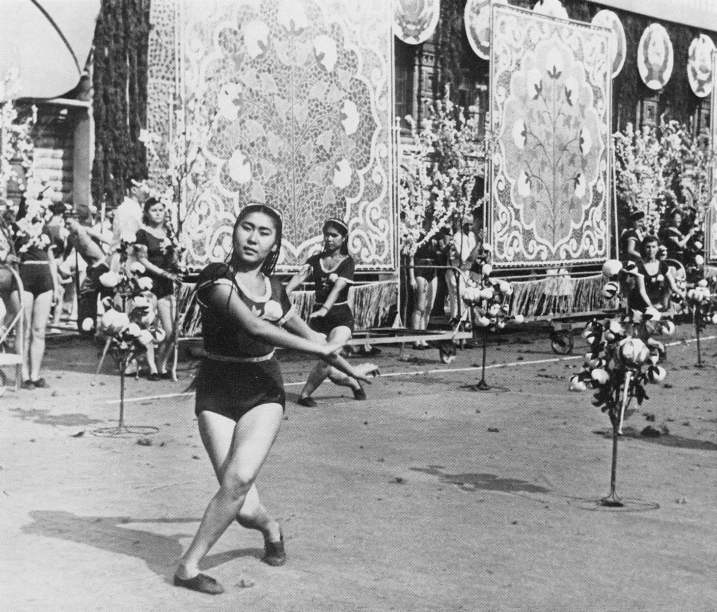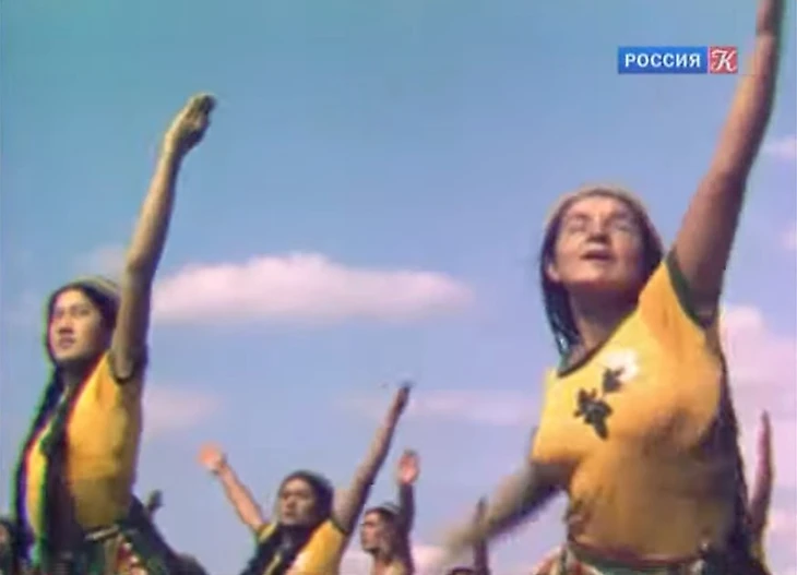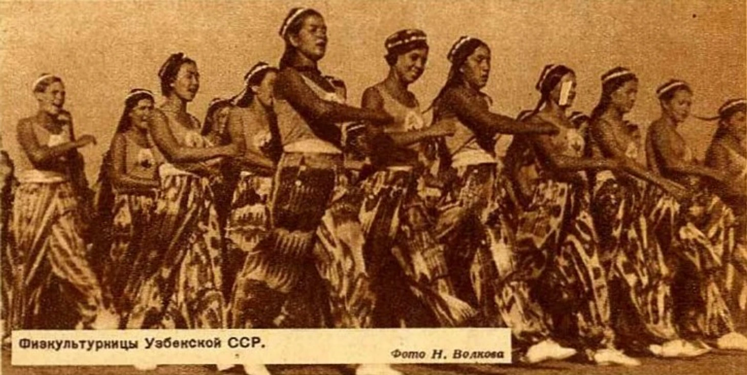 На желтые футболки девушек нанесен рисунок хлопка, а представление, показанное в июле 1939 года на московской Красной площади, называлось «Солнечный Узбекистан».
