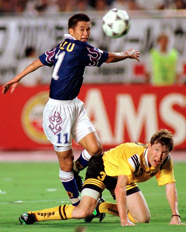 7 сентября 1997 года. Токио. Национальный стадион. Отборочный турнир ЧМ-1998. Япония - Узбекистан - 6:3 (4:0). Кадзуёси Миура (№ 11) и Андрей Фёдоров