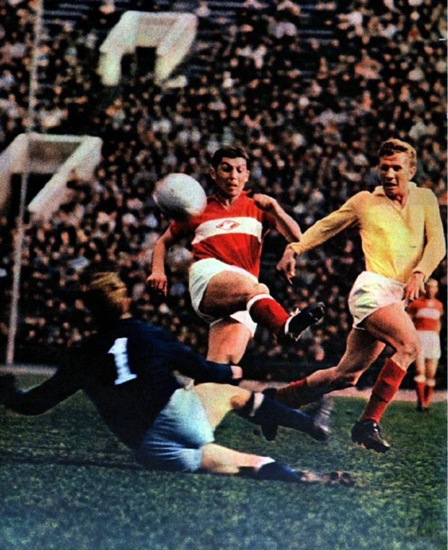 1960-е годы. Форвард ташкентского «Пахтакор» Берадор Абдураимов в желтой форме