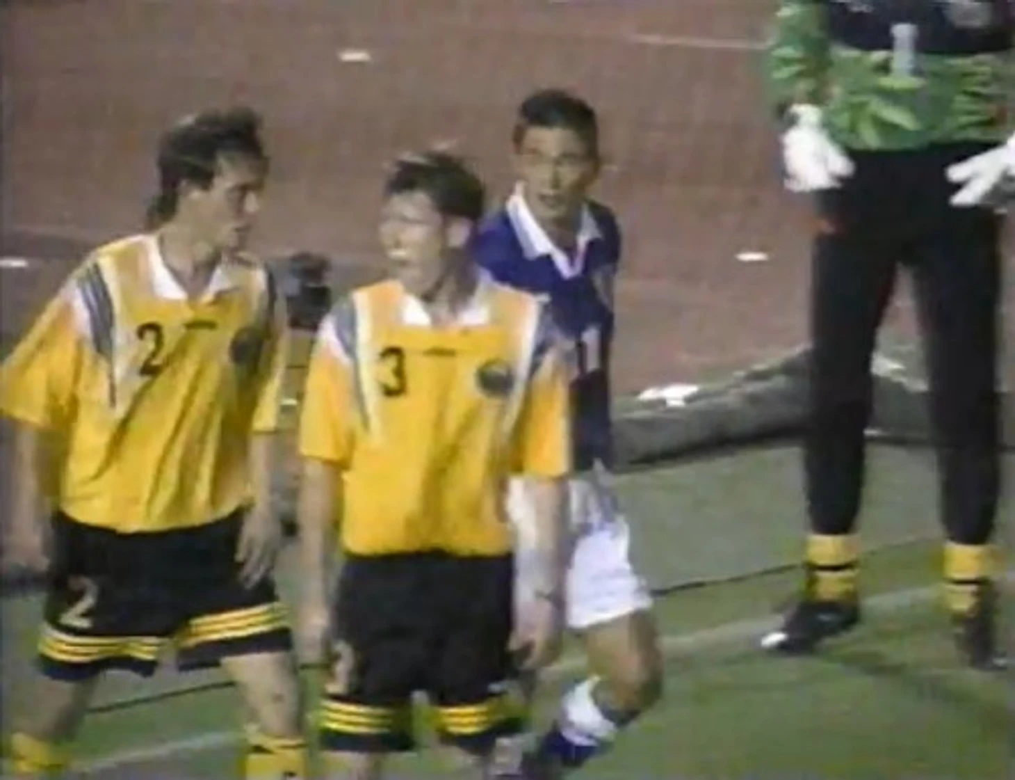 11 сентября 1996 года. Токио. Национальный стадион. Товарищеский матч в честь 75-летия Японской футбольной ассоциации. Япония - Узбекистан - 1:0 (1:0). Февзи Давлетов (№ 2) и Андрей Фёдоров (№ 3) против Кадзуёси «Кадзу» Миуры