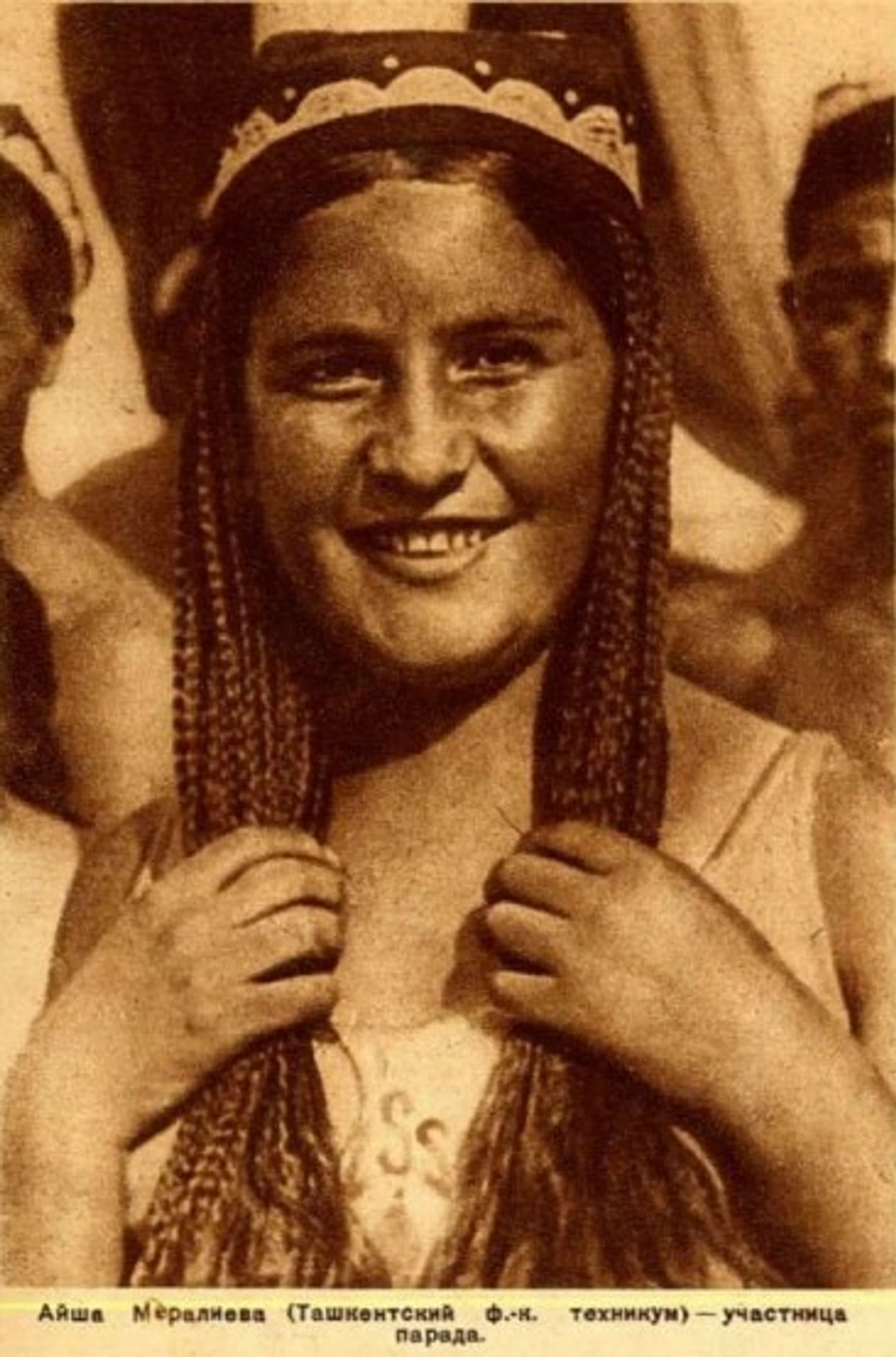 12 июля 1937 года. Москва. Красная площадь. Парад физкультурников. «Айша Мералиева (Ташкентский физкультурный техникум) - участница парада» (фото из журнала «Физкультура и спорт» № 15 за август 1937 год)