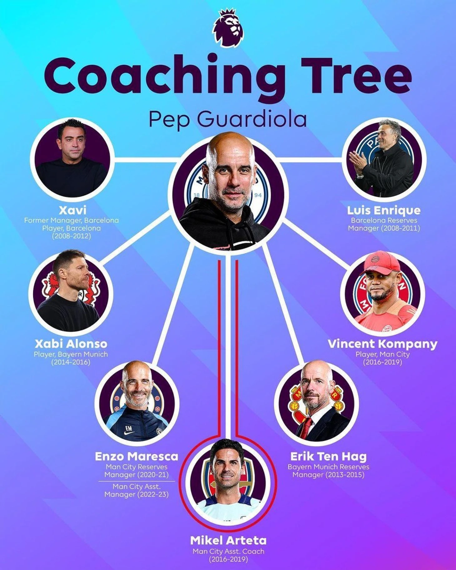 Тренерское древо Гвардиолы: Пеп не только завоевывает трофеи, но и воспитывает топовых тренеров👨🏫👨🎓