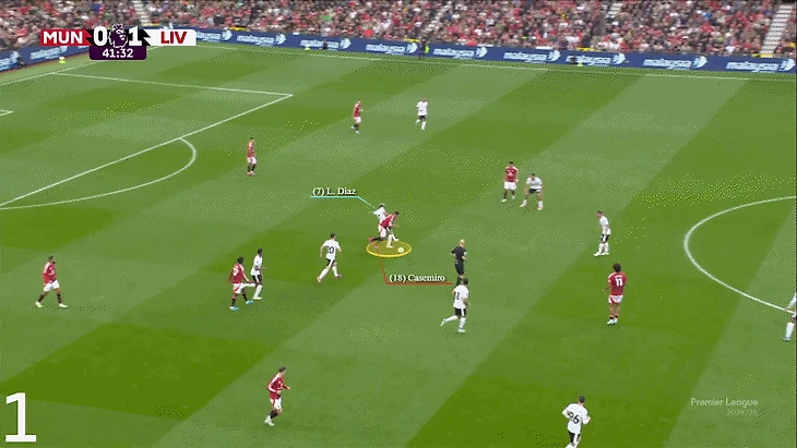 Самообладание не всегда было характерно для его завершающих ударов, но против «Манчестер Юнайтед», начав движение, отвоевав мяч у Каземиро, он завершил его, пробив в касание мимо Андре Онаны в ближний угол — необычное завершение для Диаса, склонного с силой заносить мяч в ворота.