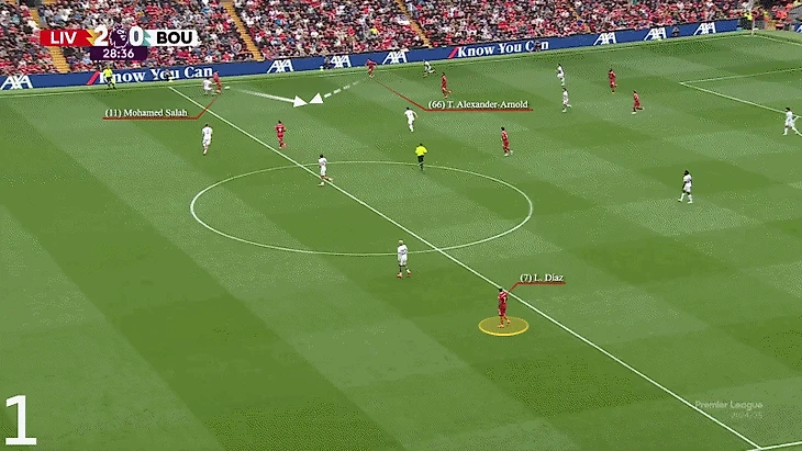 Позиции Трента Александер-Арнолда и Энди Робертсона также изменились. Оба они теперь занимают более естественные позиции крайних защитников по сравнению с инвертируемой позицией Александер-Арнолда в прошлом сезоне, что отразилось на расположении Робертсона. Поддержка часто забегающего левого защитника облегчает Диасу задачу.