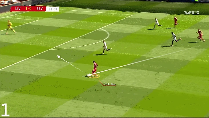 В предсезонном матче «Ливерпуля» против «Севильи» все было многообещающе. Во время второго гола Диас сместился в центр, чтобы поддержать Диогу Жоту, и получил от него пас. Быстрым движением он перехитрил защитника и пробил в верхний угол.