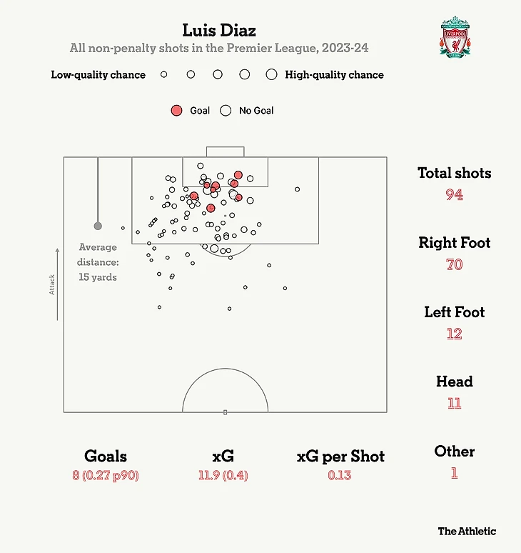 Диас, подписанный в качестве преемника Садио Мане на левом фланге, ранее не выглядел способным обеспечить такую мощь. В четырех из шести своих сезонов на «Энфилде» Мане забивал 20 и более голов.