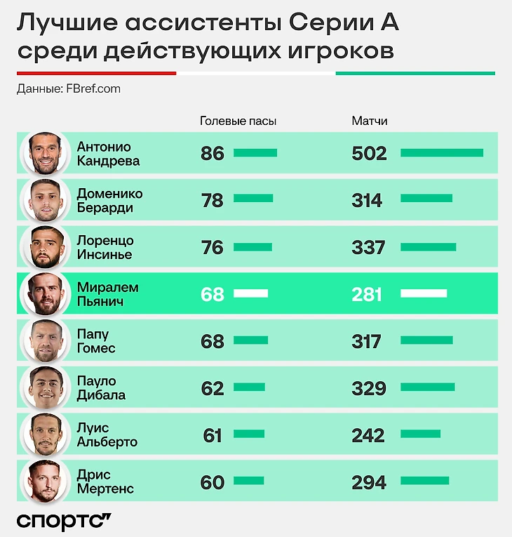 Сейчас у него около 150 голевых за карьеру и место в четверке лучших действующих ассистентов Серии А. Все конкуренты играли в атаке.