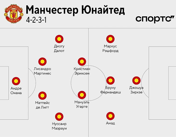 Но сложно представить, что будет с центром поля «Юнайтед», если с первых минут не выйдет Каземиро или Мануэль Угарте. Разрушение в этой игре необходимо – «Тоттенхэм» в каждом матче претендует на доминацию в середине. Оборонительных качеств Кобби Майну может не хватить.