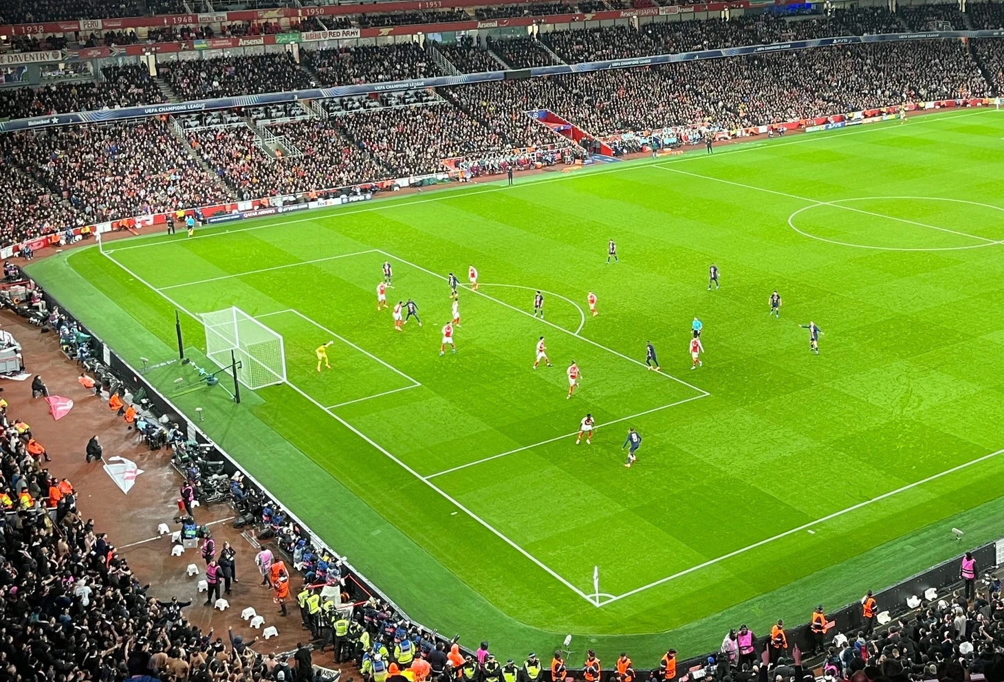 У меня место на самом верхнем ряду, что дало два несомненных плюса. Первый – то, что можно стоять, не беспокоясь о людях за спиной. Второе – сзади находится окно с видом на город. Я решил, что если «Арсенал» устроит такую же тягомотину, как в первом туре с «Аталантой», то я гордо развернусь и буду любоваться вечерним Лондоном.