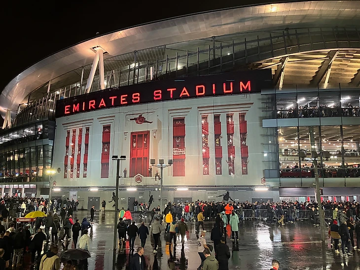 И вот я у «Эмирейтс». В воздухе влажно, только что закончился ливень, и на время игры ожидается хорошая погода -15 градусов и никакого дождя.