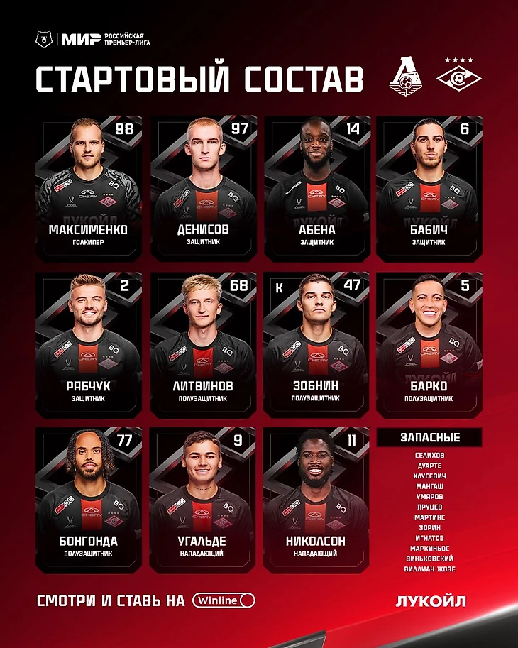 Тактики команд: тактика «Спартака» была похожа на 4 4 2 но я думаю что она не подходит «Мясу» им больше подходит как говорил Слишкович тактика в 3 защитника или которую весь этот сезон использовал Станкович 4 4 3. Тактика «Локо»: 4 2 3 1.
