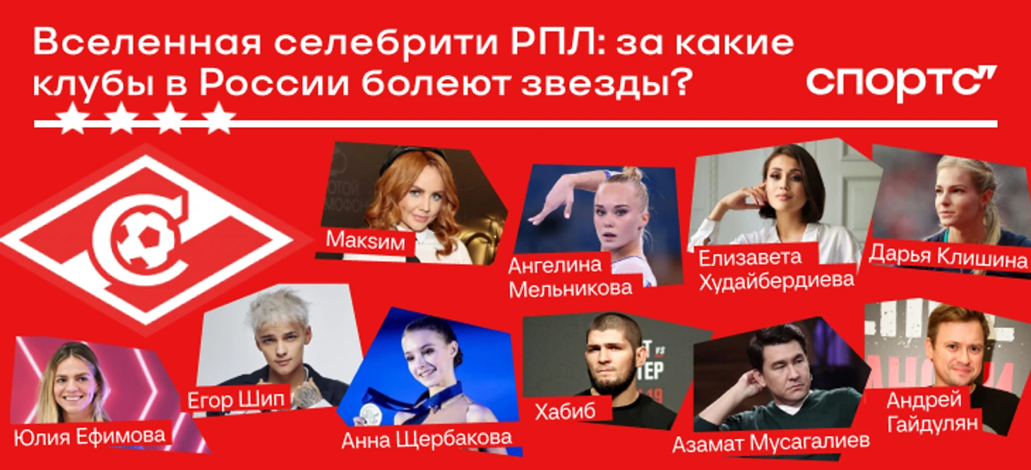 «Спартак» после каждого домашнего матча выкладывает галерею со звездами на стадионе – и это совершенно разные люди: чемпионка мира по плаванию Юлия Ефимова, олимпийская чемпионка в фигурном катании Анна Щербакова, актеры всех возрастов, молодежные звезды и легенда UFC Хабиб Нурмагомедов.