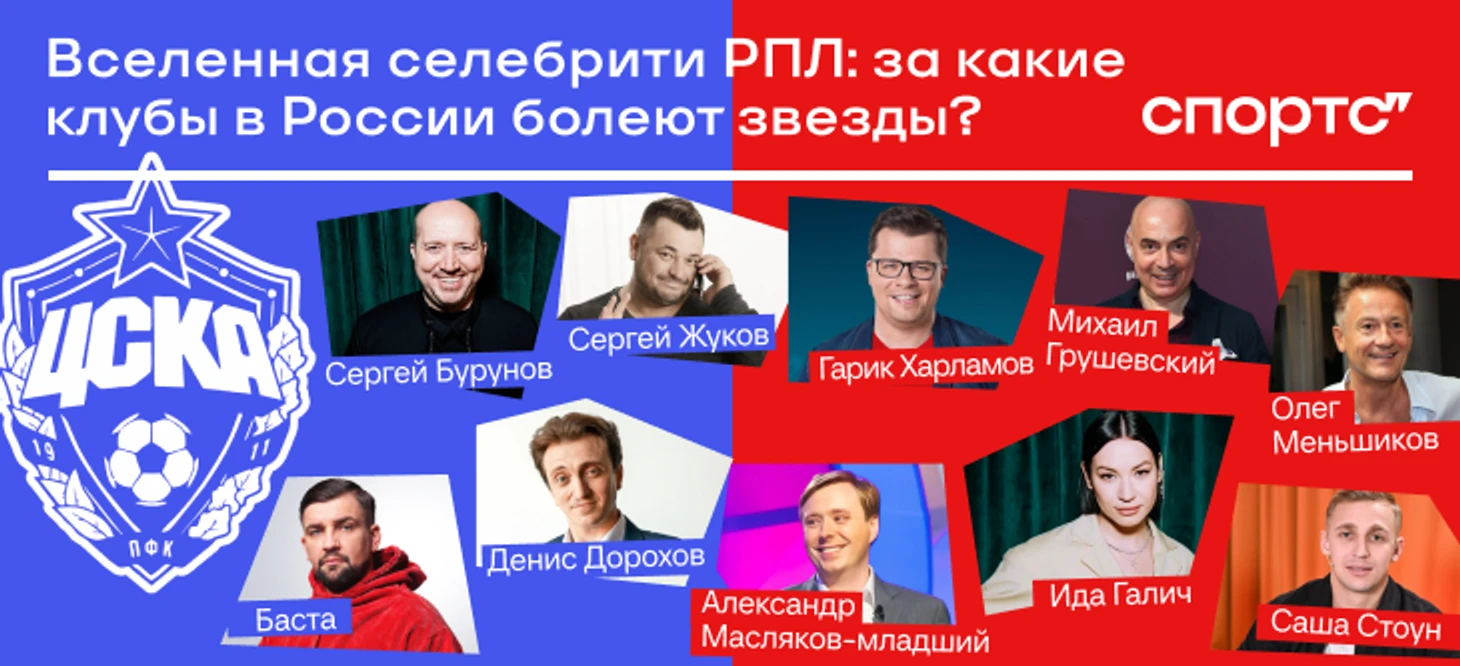ЦСКА подсвечивает каждый поход на футбол Гарика Харламова, Сергея Бурунова и Сергея Жукова.